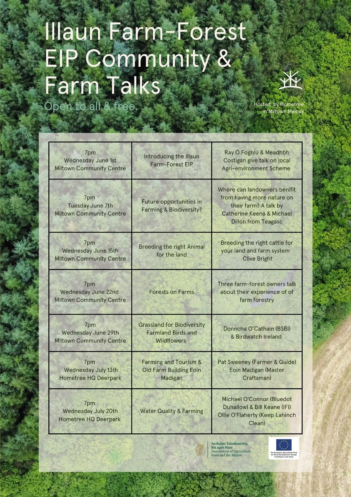 Our Farm-Forest EIP has a large community engagement, so we are thrilled to announce that throughout the months of June and July we will be hosting Illaun Farm-Forest EIP Community and Farm Talk Series.