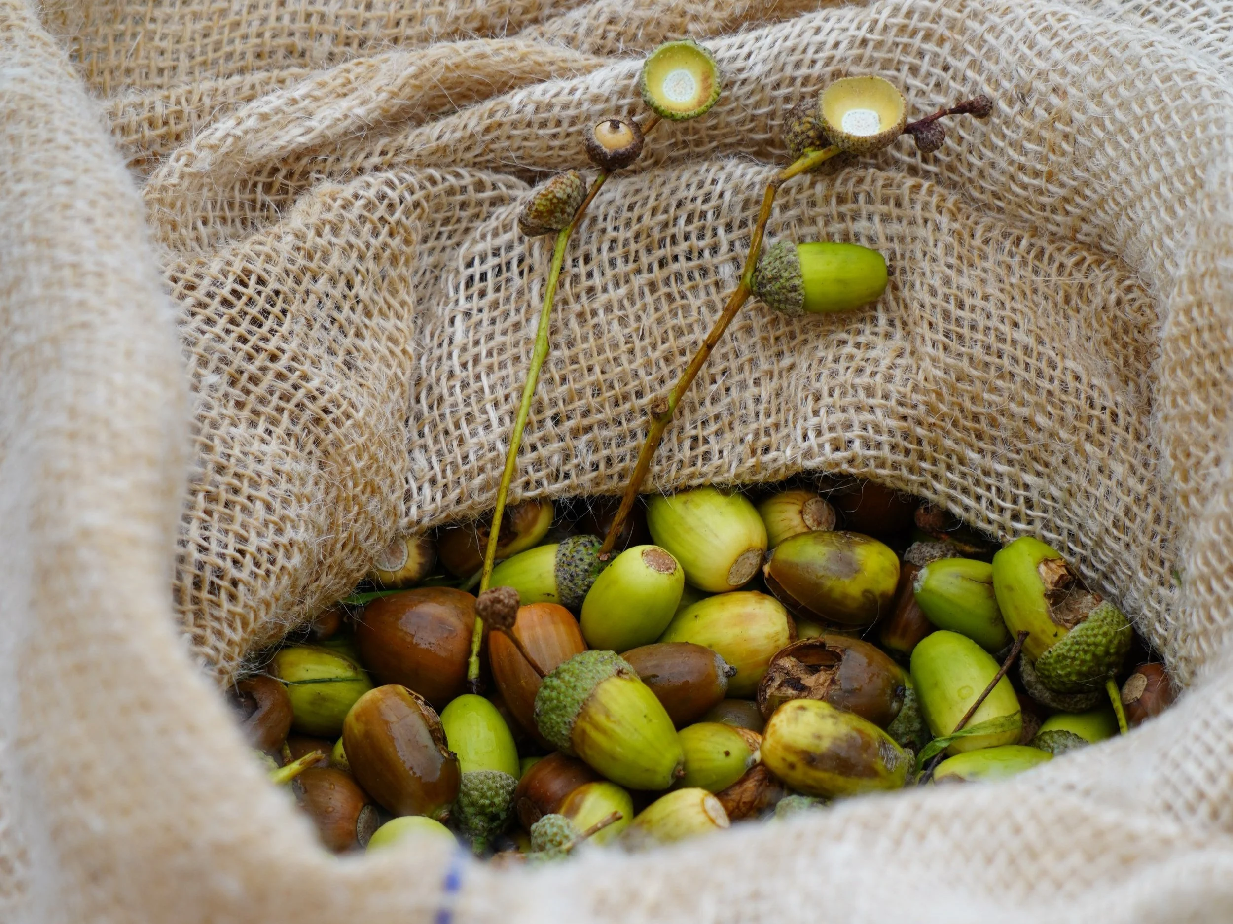 Collected oak acorns.
